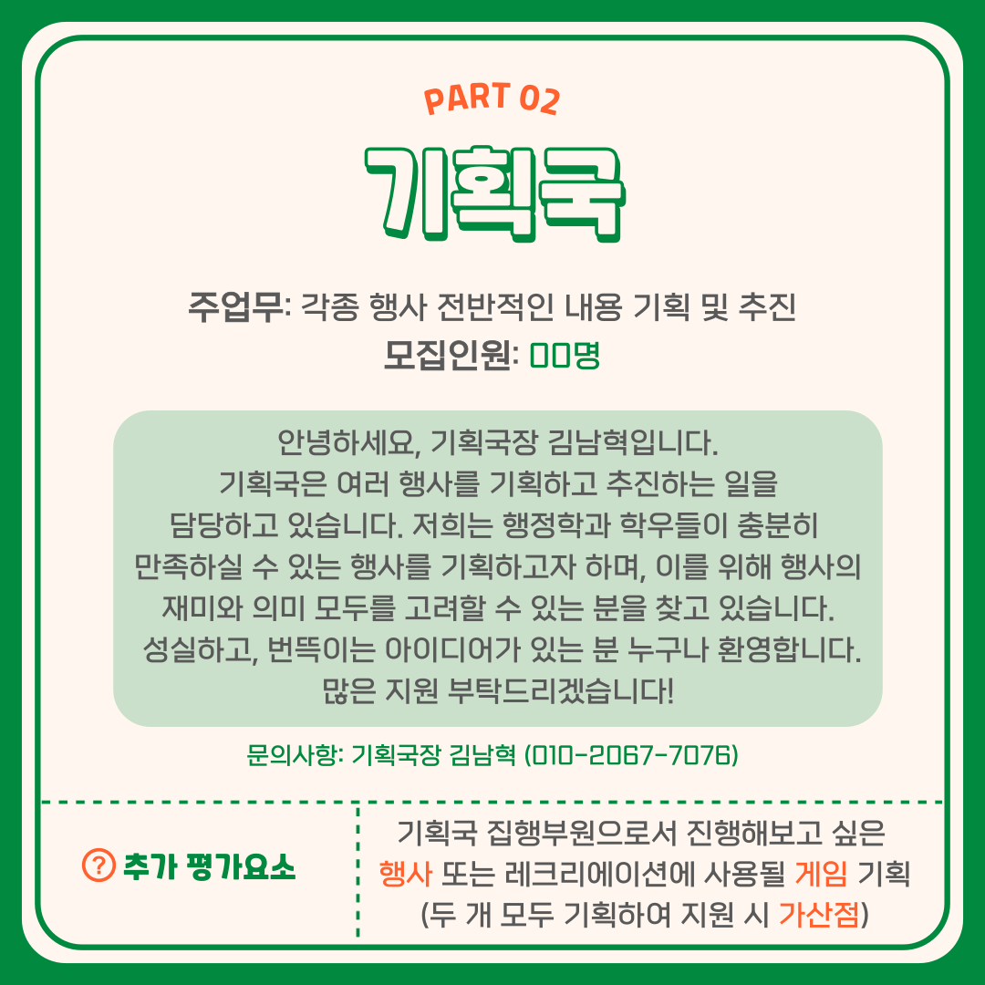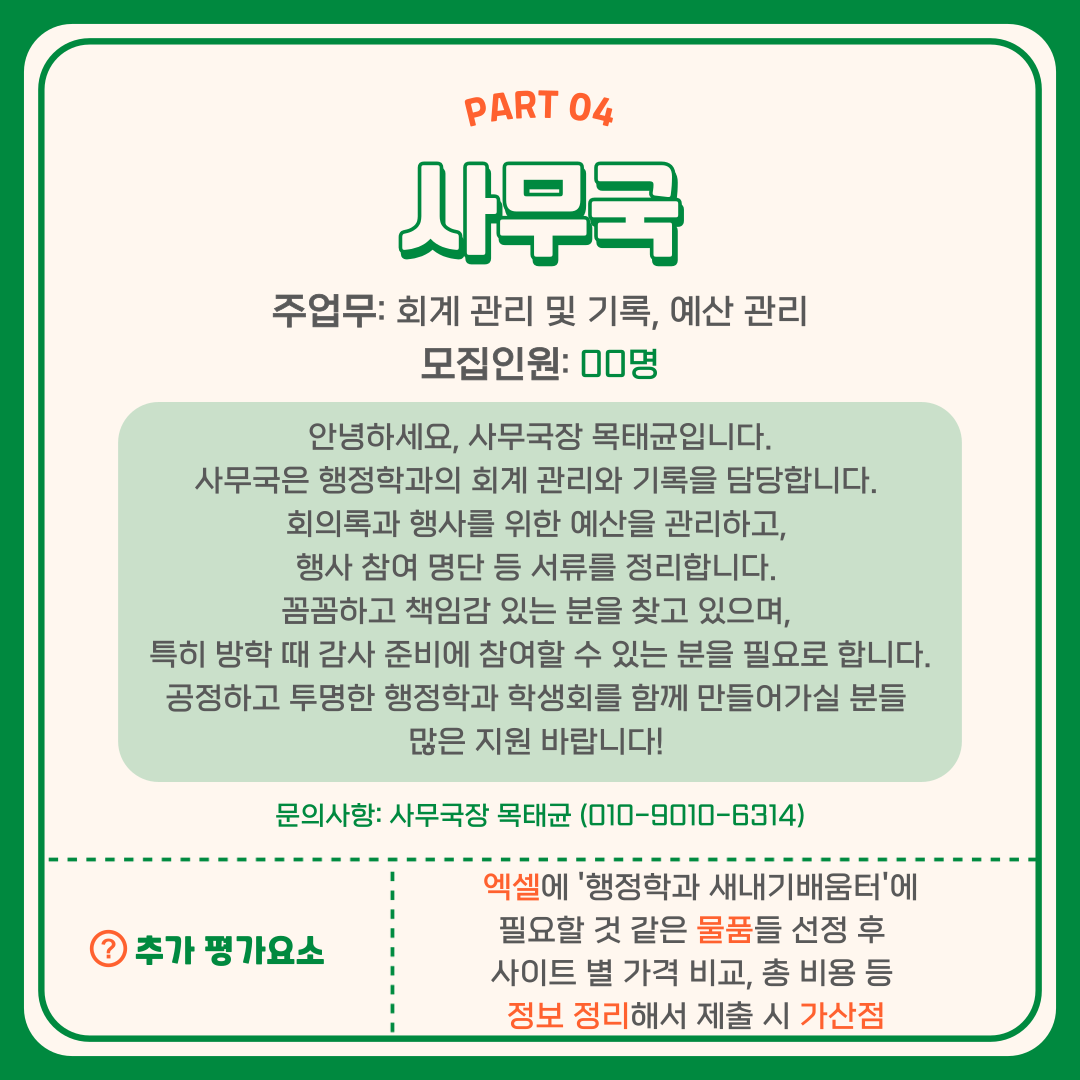 행정학도로서 학생 자치의 꽃을 피우고 학생 사회에 더욱 가까이 다가가는 경험을 가질 수 있으리라 생각합니다👏🙏