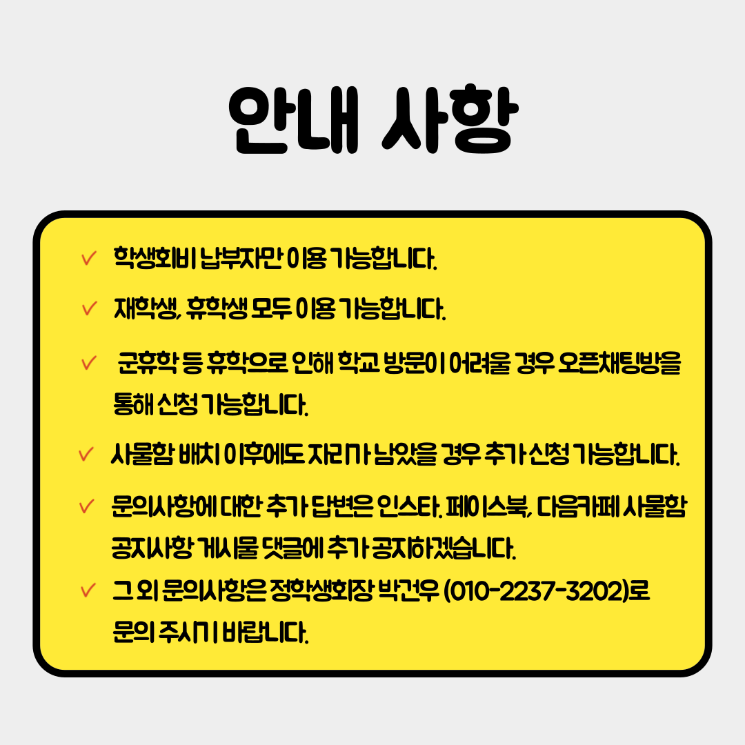 🎈그 외 문의사항은 정학생회장 박건우(010-2237-3202)로 문의하시길 바랍니다.