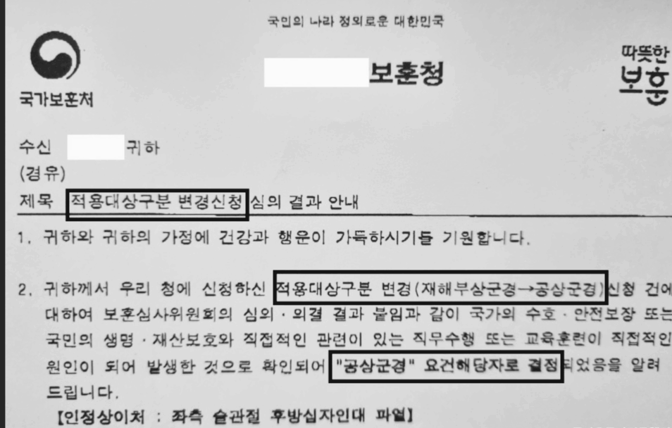 #국가유공자보훈보상대상자 차이 #공상군경재해부상군경 차이 #적용대상구분변경신청 #공상군경 #재해부상군경 #대상변경 #국가유공자등록