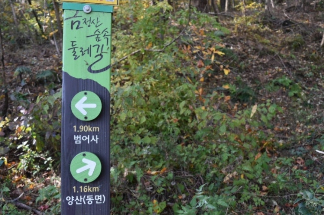 2. 코스: 범어사주차장 →숲사배고개쉼터→양산동면→ 사송 금륜사방향→원점회귀