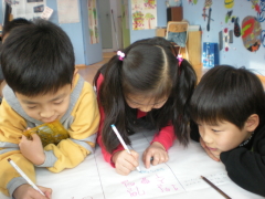 자유시간을 보내는 중에 아이들이 빨리 하원을 하고 다은이, 태욱이, 준혁이가 남아 세 아이들은 독서 나무를 그렸다.