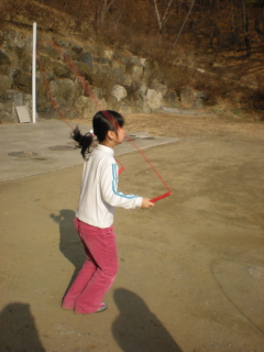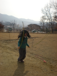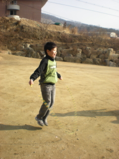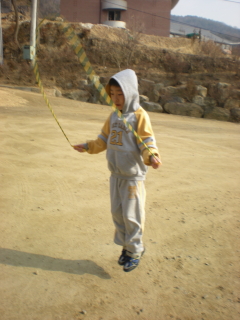 이번주 오전에는 줄넘기를 하기로 해서 마당으로 나와 아이들이 줄넘기를 했다.