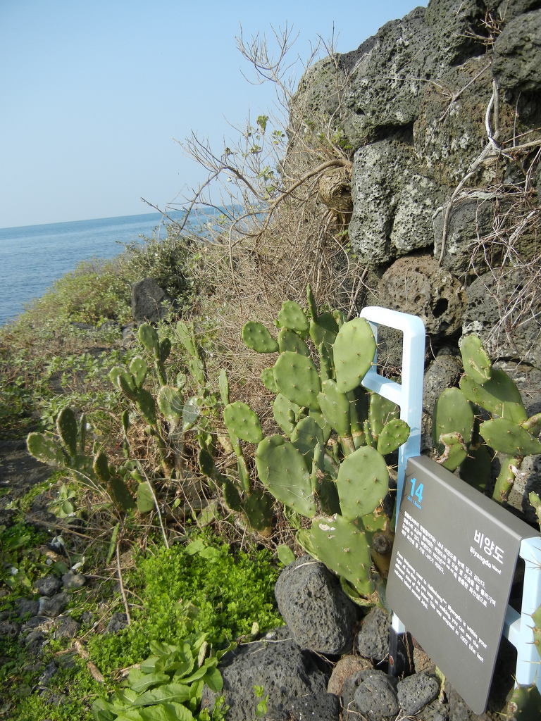 선인장사이의 간세표지가 비양도길을 알려주네요~