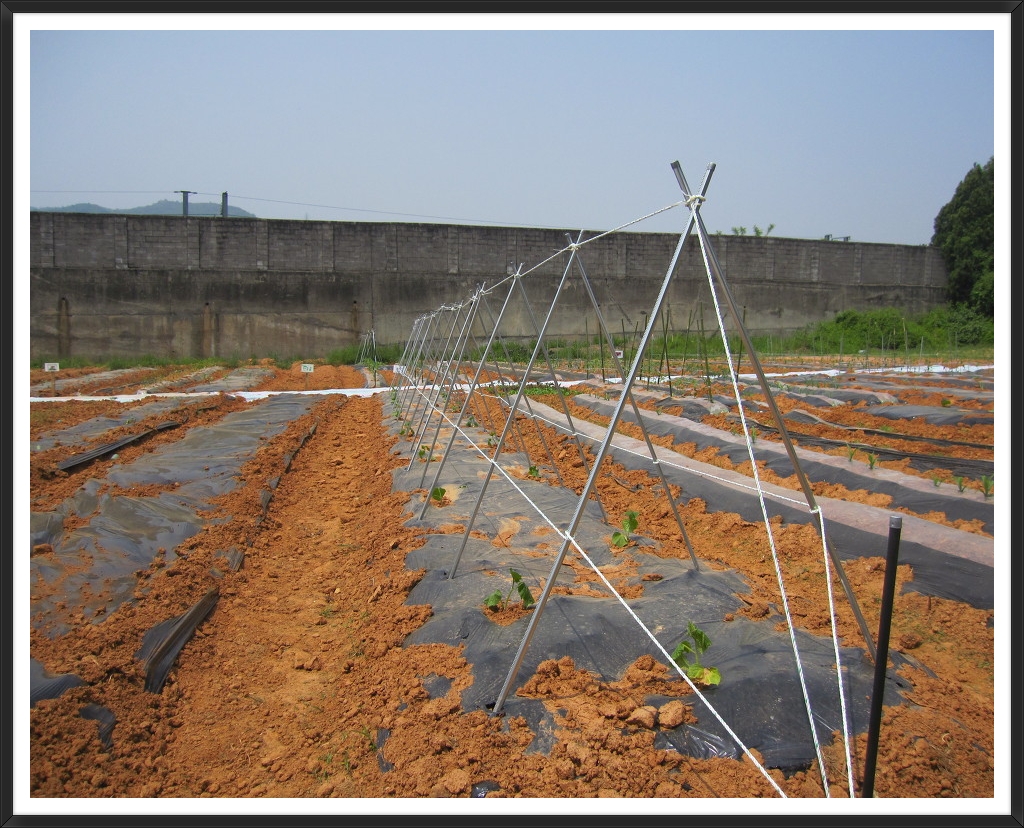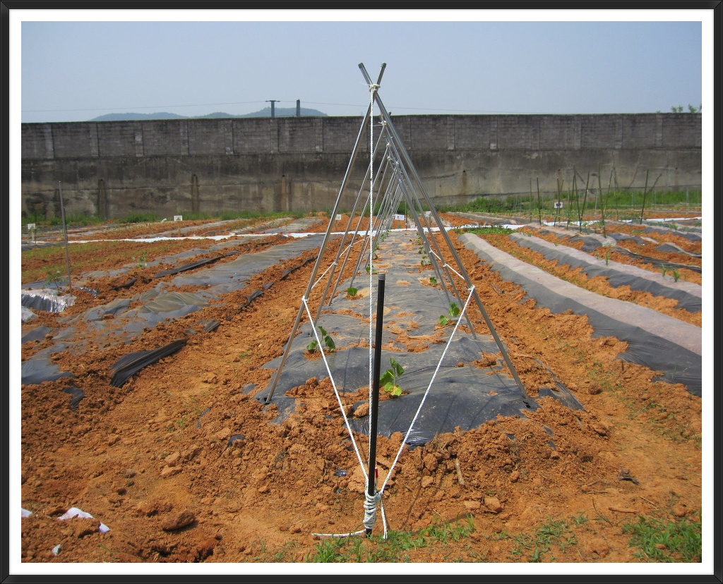 1. 1m간격으로 지지대를 땅속에 박아 설치합니다.