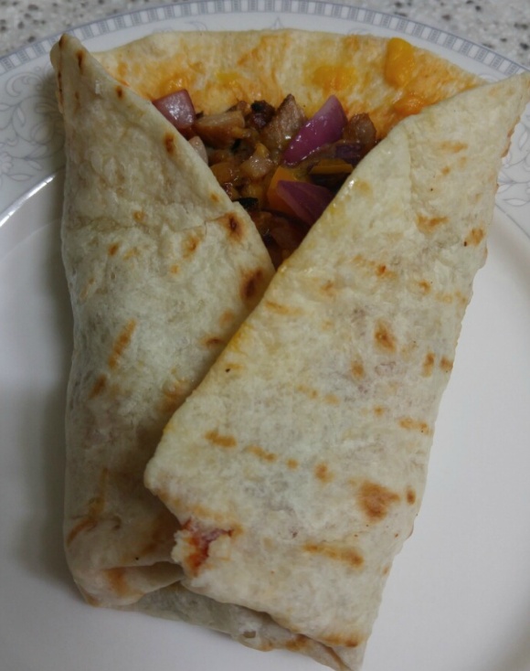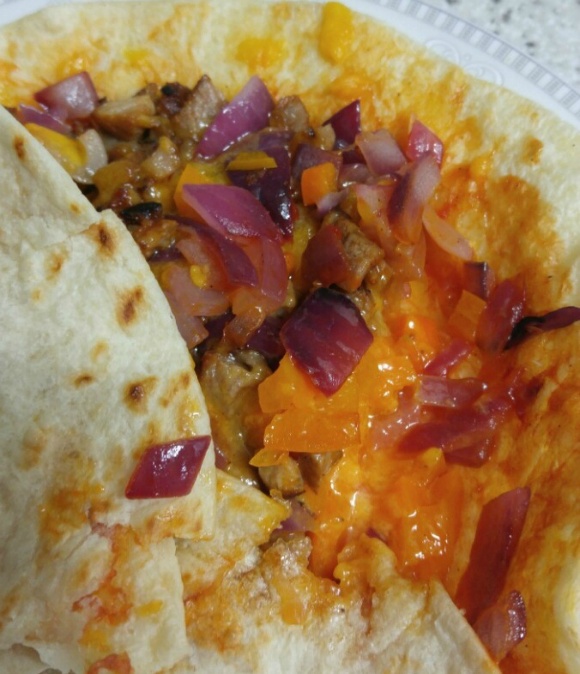 또띠아에 양파, 불고기,파프리카, 피망을 넣고