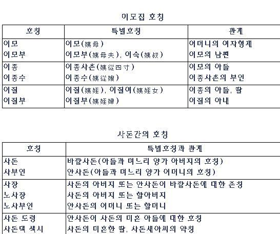 사부인 바깥사돈(아들과 며느리 양가 아버지의 호칭) 안사돈(아들과 며느리 양가 어머니의 호칭)