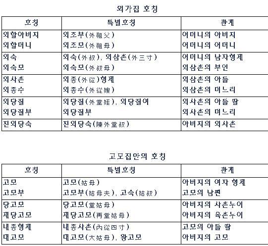 고모부(姑母夫), 고숙(姑叔) 아버지의 여자 형제