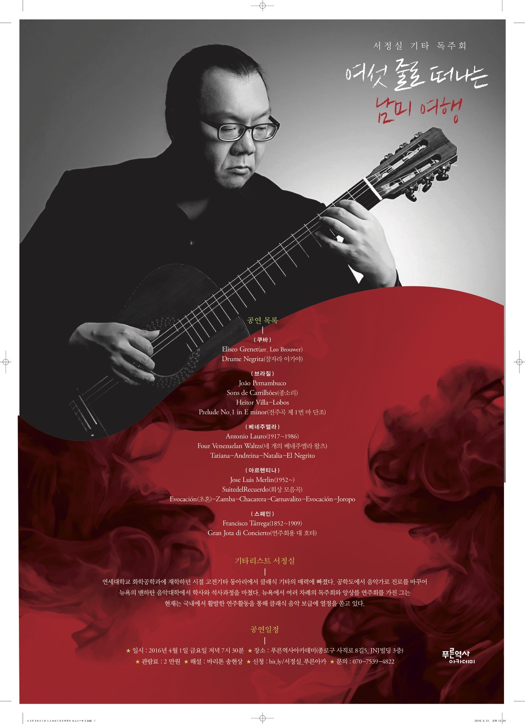 4월 푸른아카 음악회에서는 국내 최고의 클래식 기타리스트를 모셨습니다.^-^ 봄밤의 남미 음악, 어떠신가요?