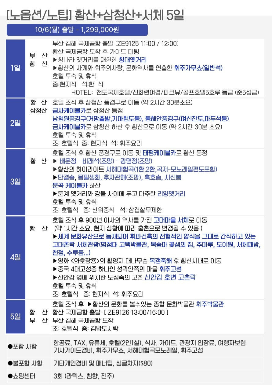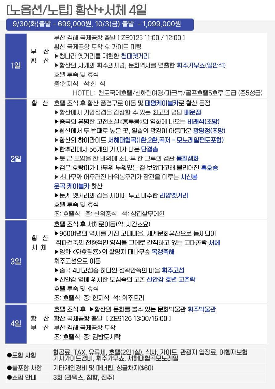 🔹 [노옵션·노팁] 황산 직항 4·5일