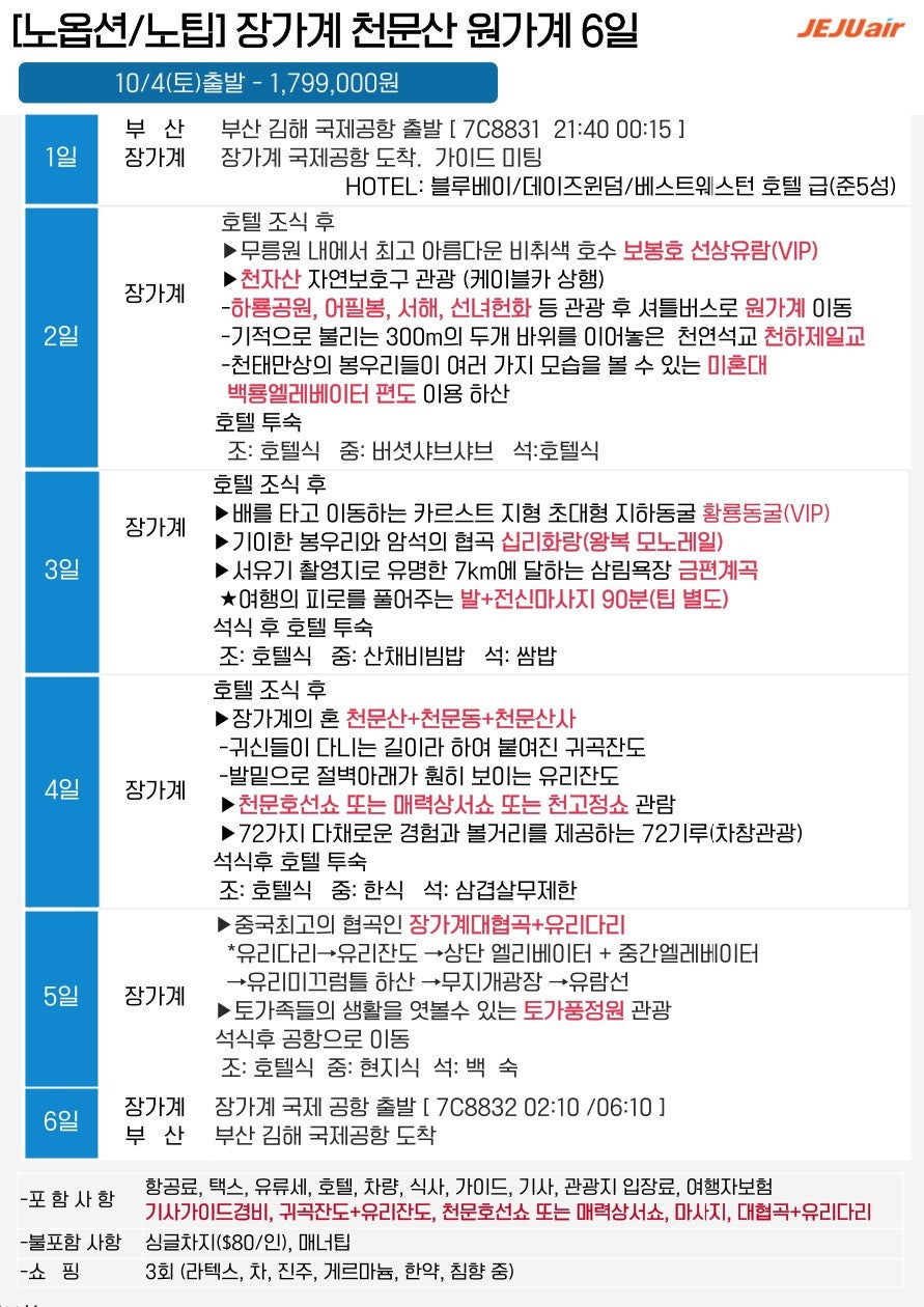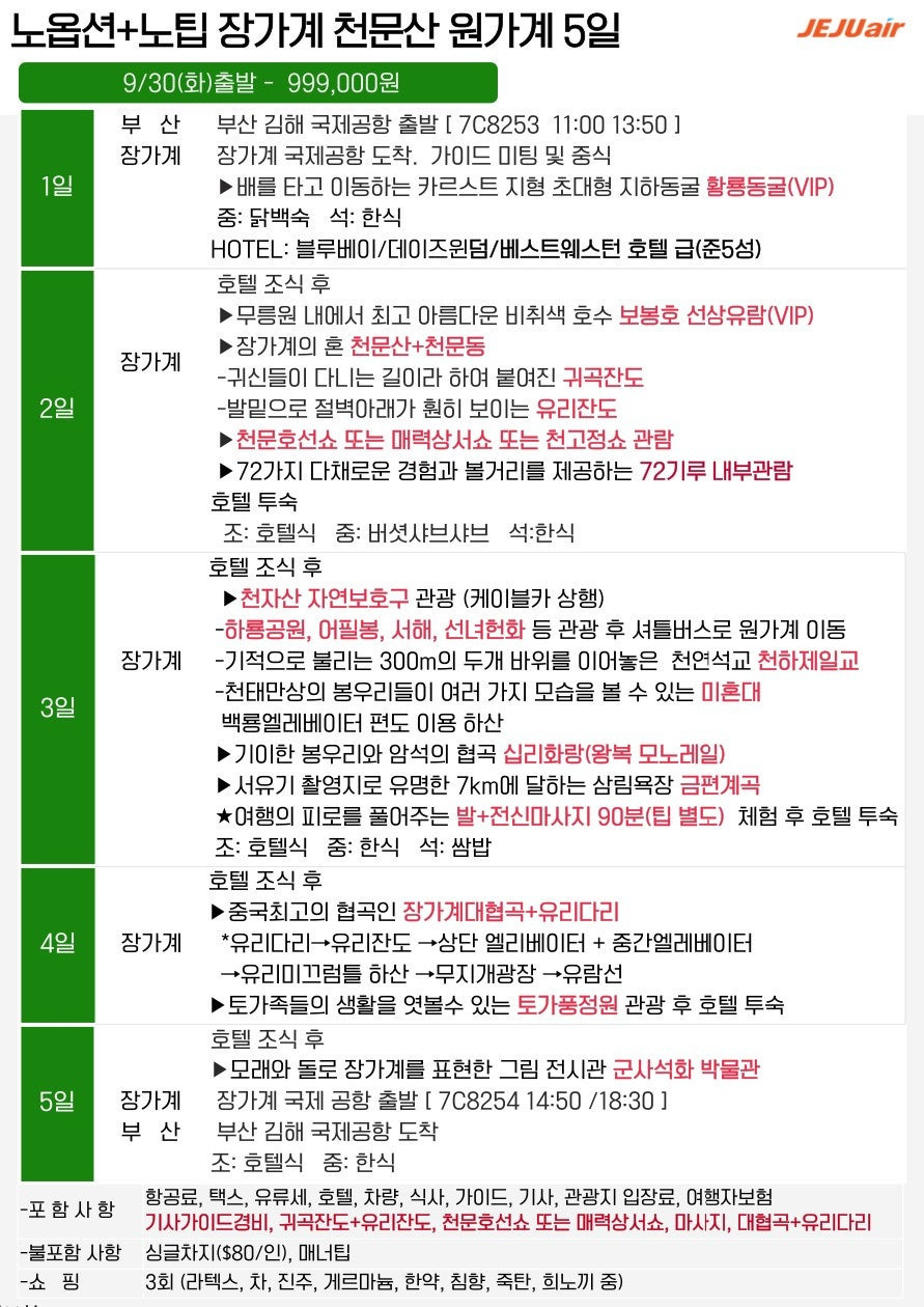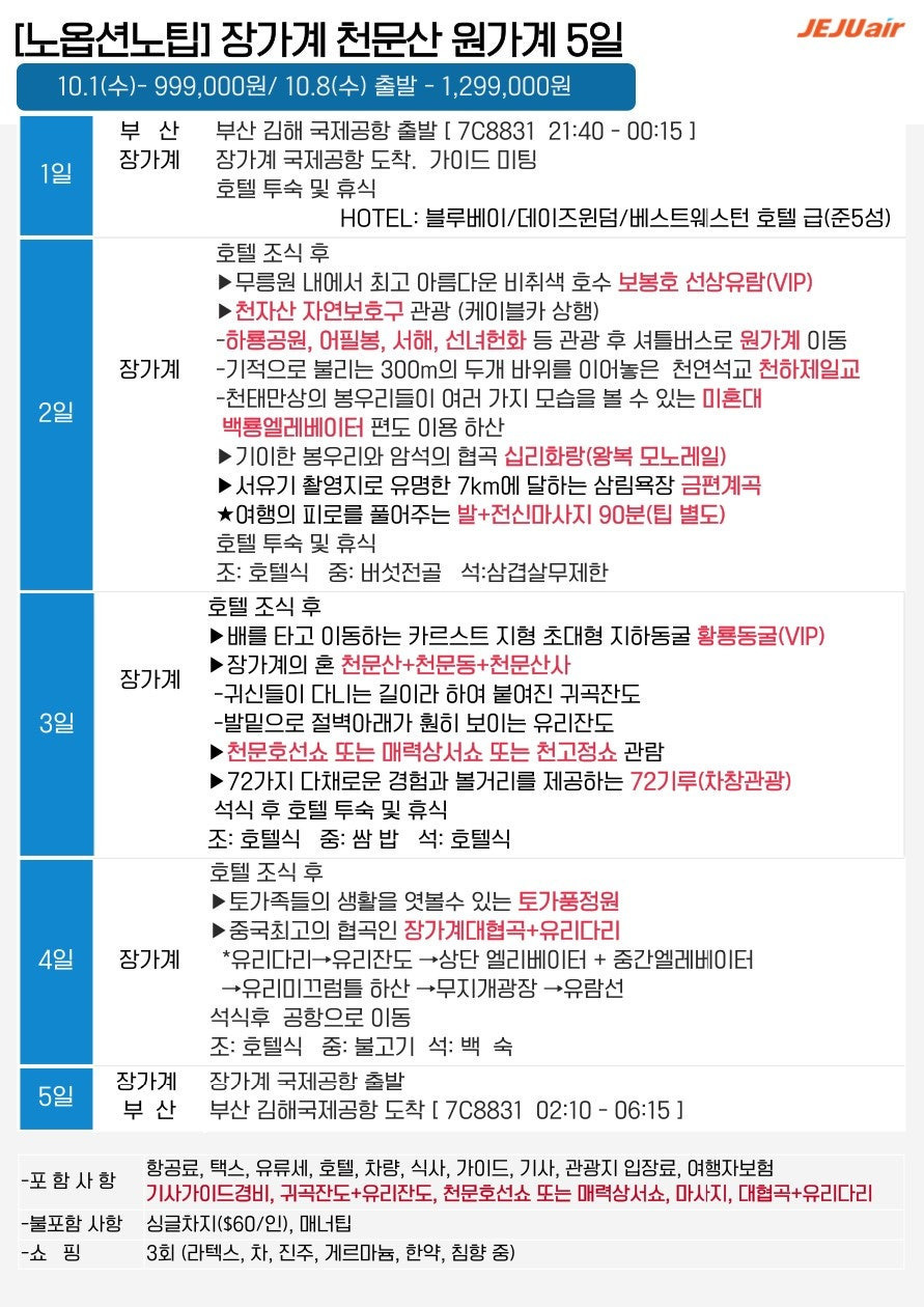 🔹 [노옵션·노팁] 장가계·천문산 5일