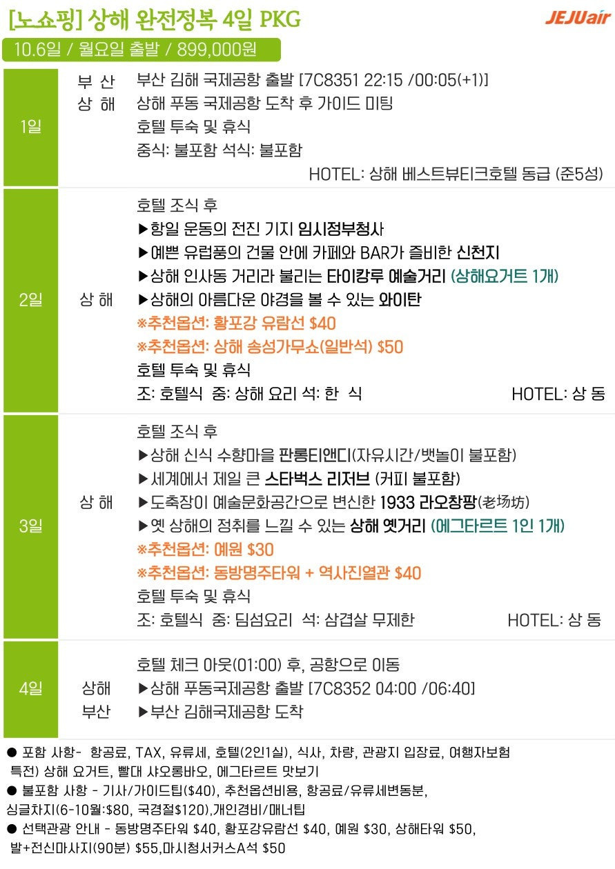 🔹 [노쇼핑] 상해 4일 (제주항공)