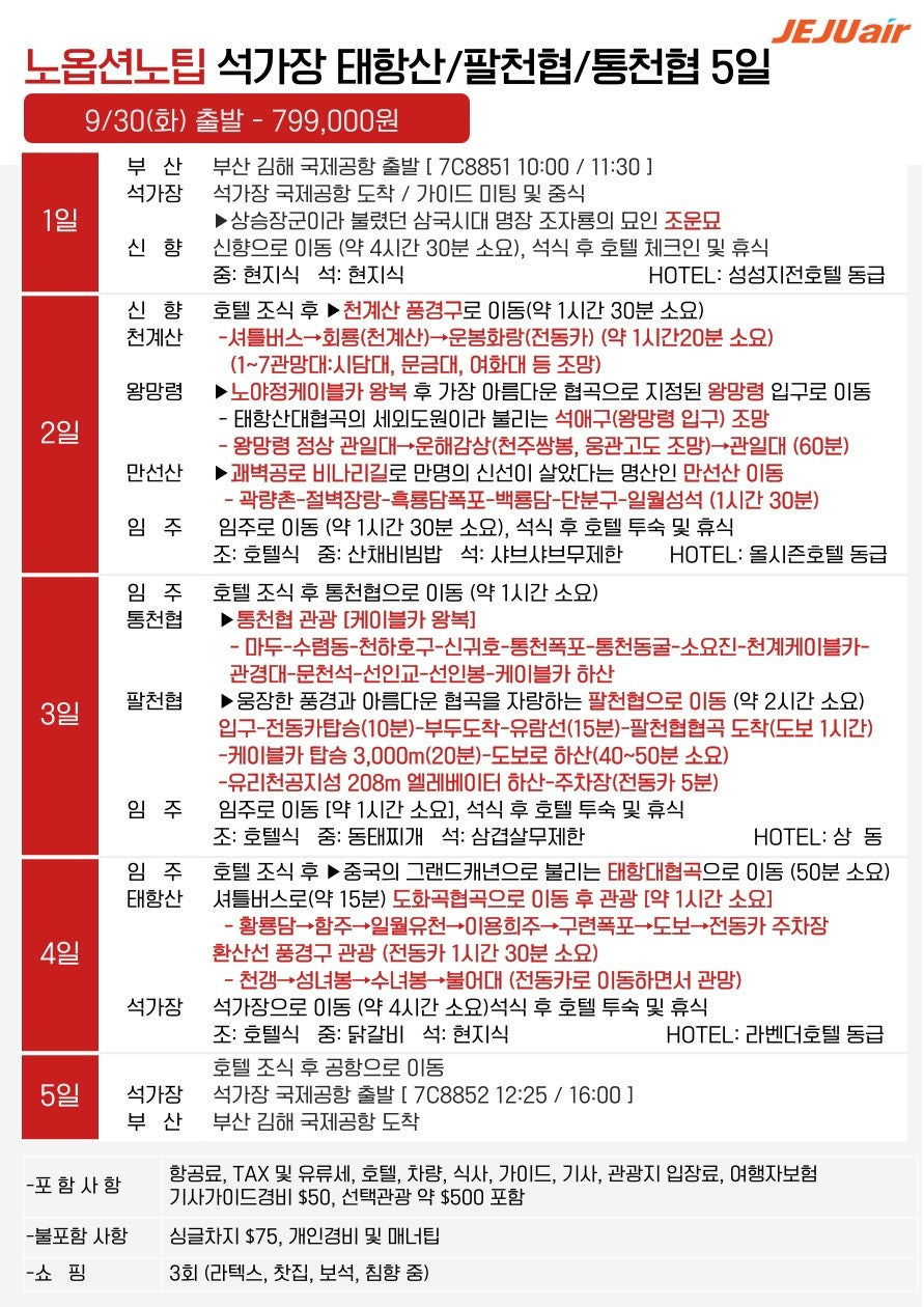 🔹 [노옵션·노팁] 석가장·태항산 5일