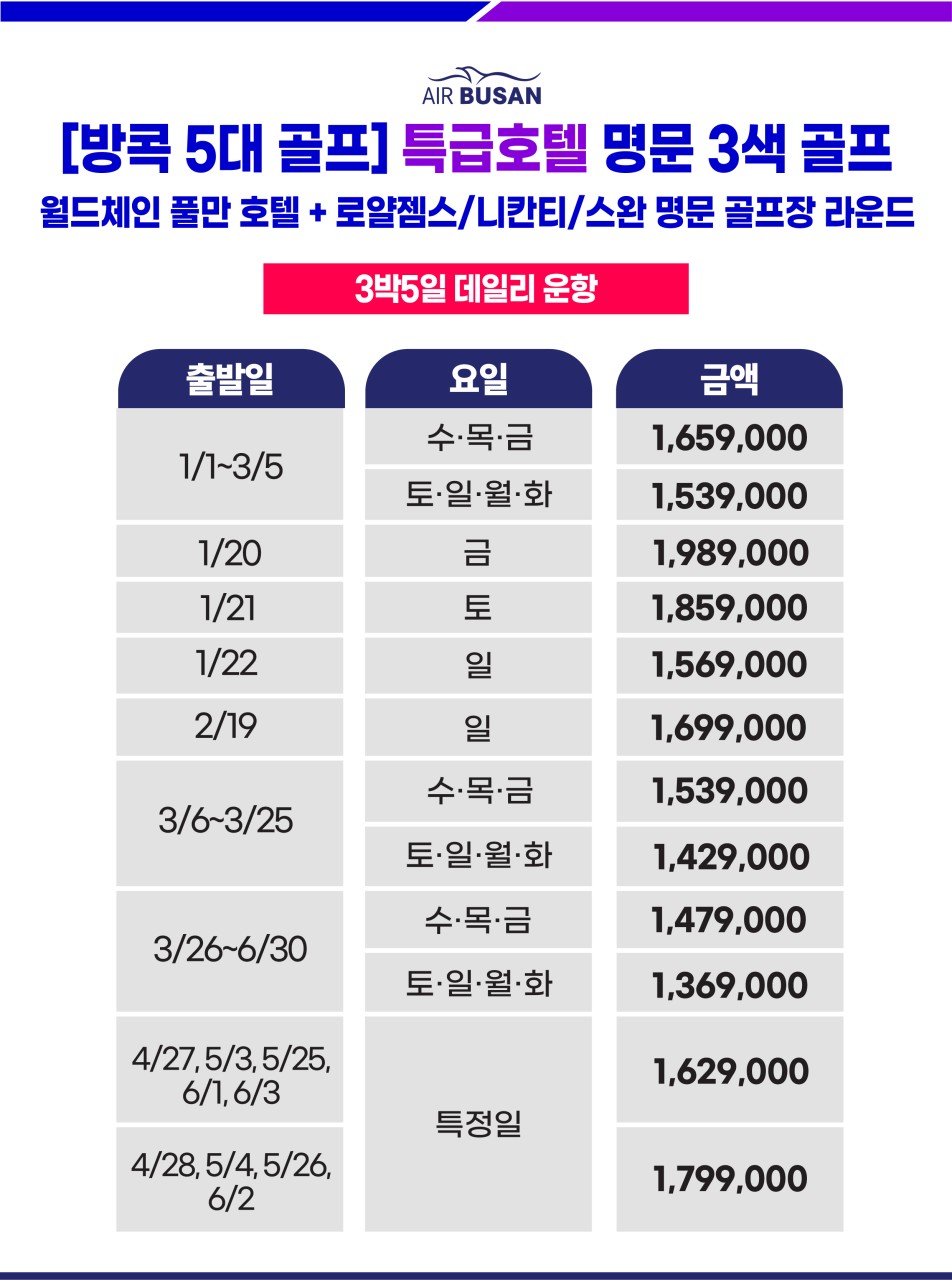 ★1월-6월 3박5일 1,369,000원 ~ ★