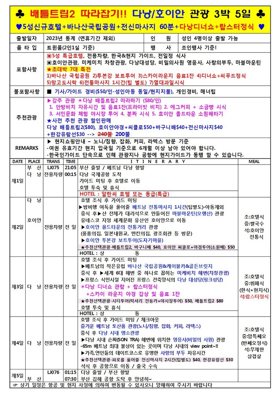 🎊🎉부산-베트남 다낭 관광 PKG 안내👍👍