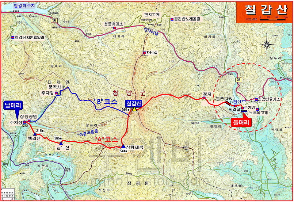 천장호 관리 사무소입구~천장호 출렁다리~칠갑산 정상~장곡사~장승공원주차장
