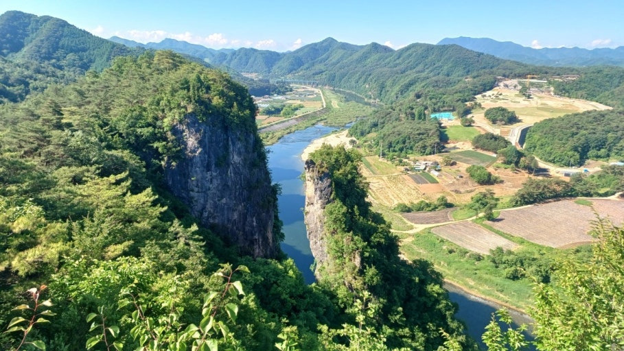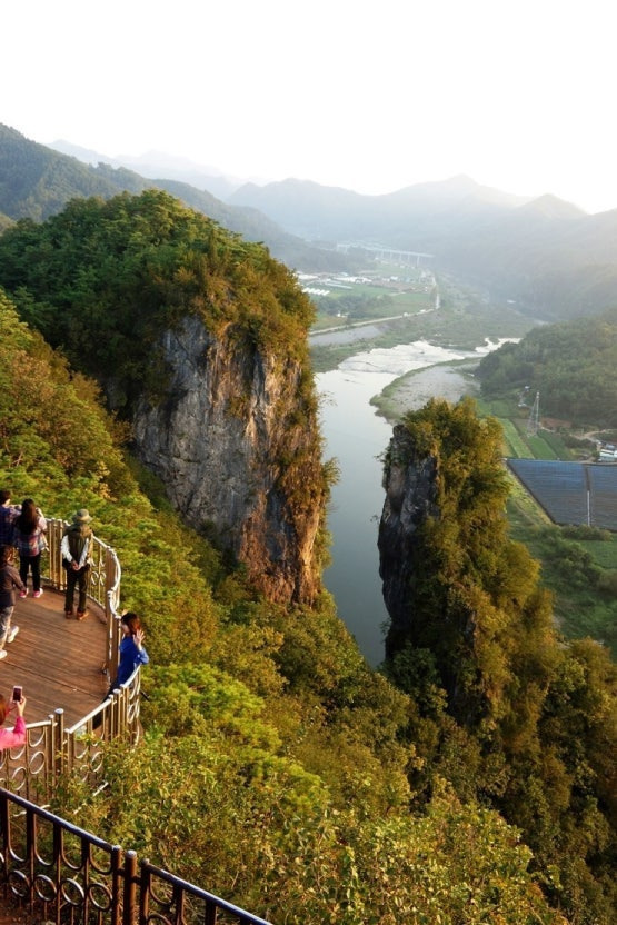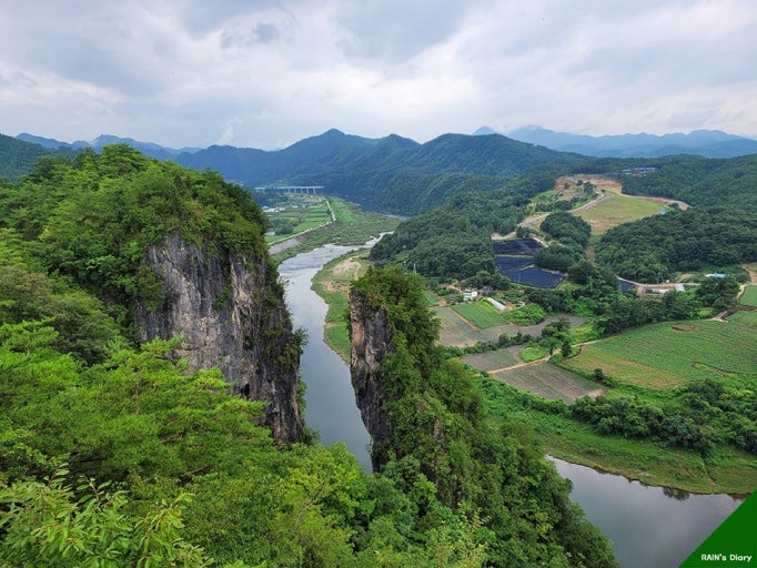 심지어 무궁화꽃 모양을 닮은 한반도 지형의 비경이 한눈에 내려다보이는 전망대입니다.