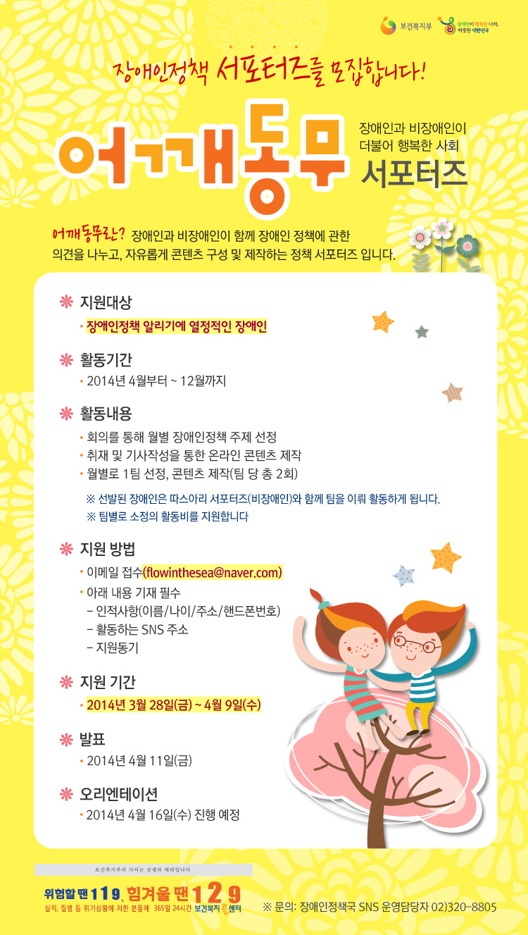 바로 보건복지부 장애인정책국에서 모집하는 “어깨동무 서포터즈”인데요~