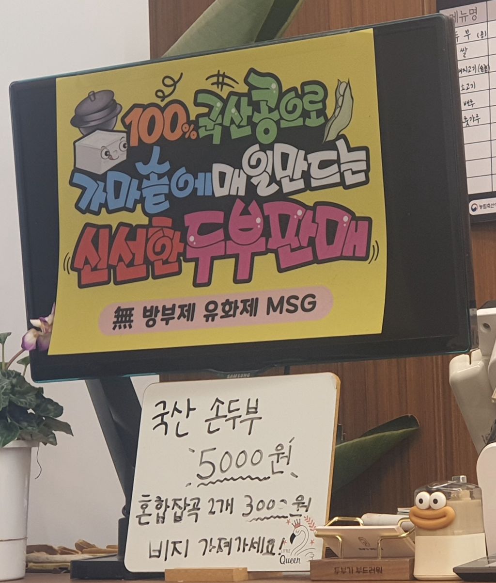 괴정에 매일 직접 만드는 두부가게가 있다 한3년만에 들른것 같다 생긴지 3년가량 된것 같은데 이젠 자리를 잡아서 점심엔 웨이팅이 있는것 같다