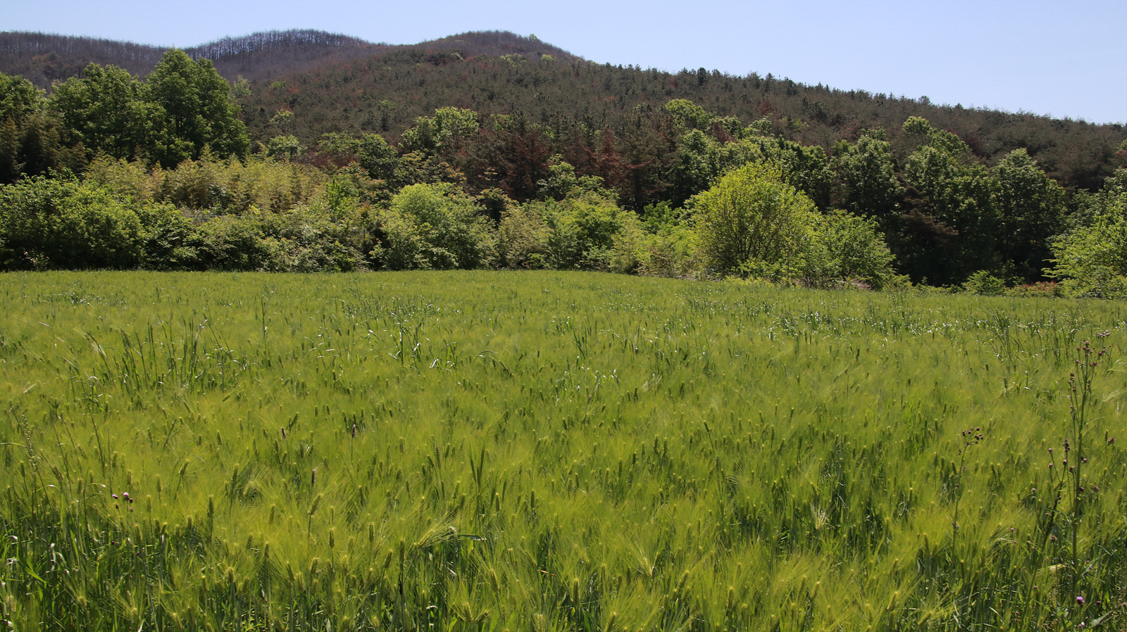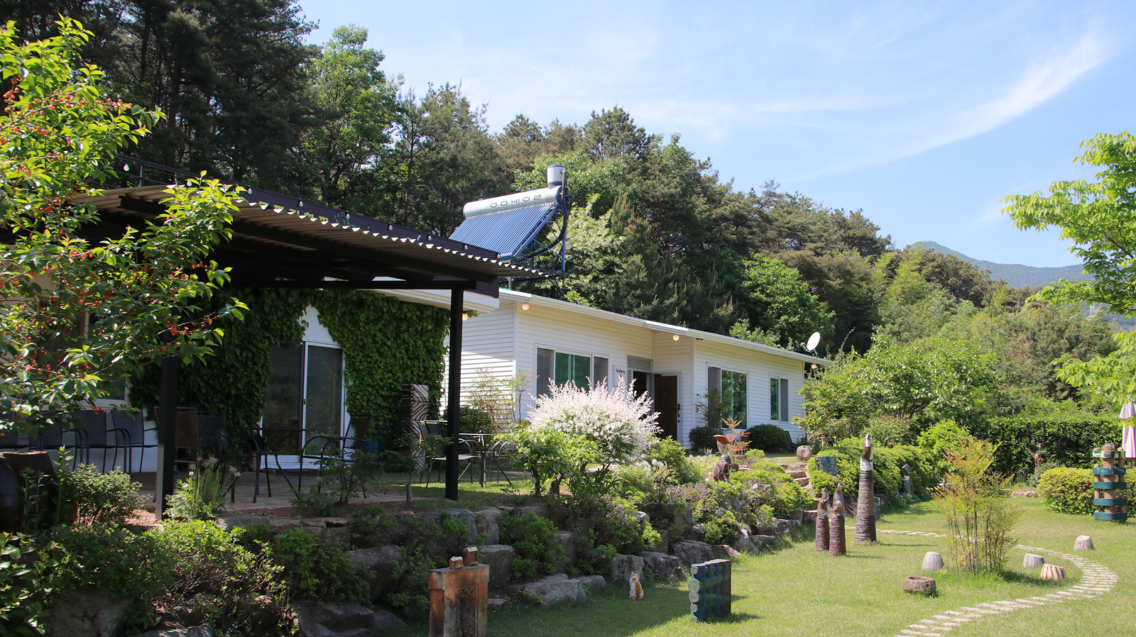 마을 주변으로 저수지와 청보리밭이 펼쳐져 있어