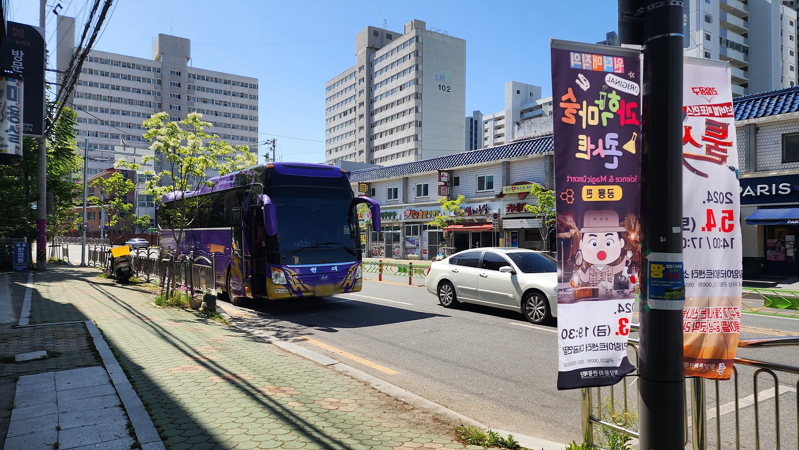 밀양역에 도착하면 고급관광버스가 여행객을 기다리고 있으며