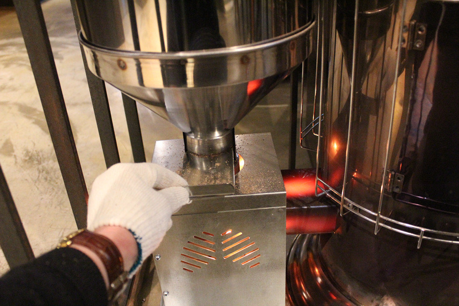 펠릿연료가 밑으로 내려옵니다.