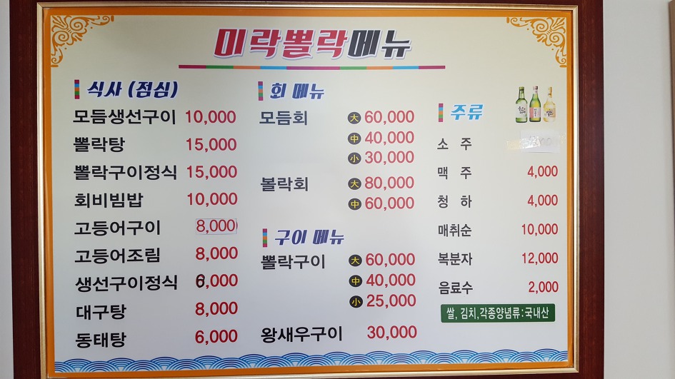 오늘은 성탄절!! 아침 일찍 큰 아이는 프리마켓으로 둘째는 친구들 송년회 모임으로 흩어지고 집사람이랑 둘이 남았다. 아침은 빵과 감자, 두유로 간단하게 해결.. 청소기 돌리고 물걸레로 거실 바닥 닦고, 아침신문 보고 etc. 돌아서니 또 점심시간이 다 되어 간다. 점심은 뭘 먹지... 뽈락회와 구이로 유명한 “미락뽈락”로 결정.