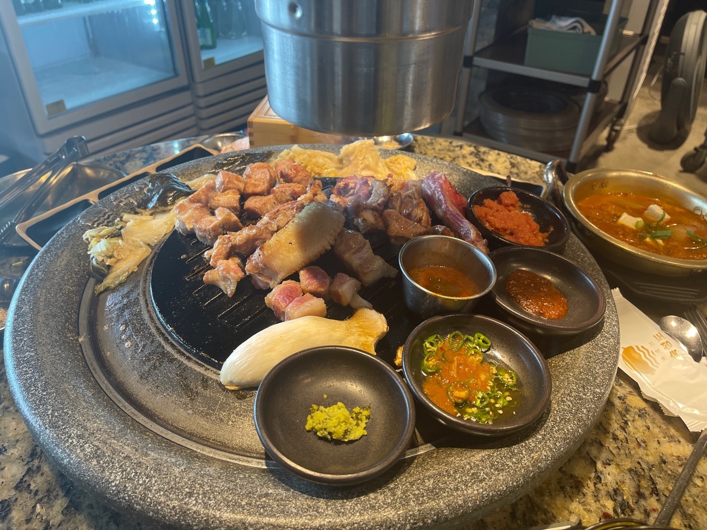 저녁에 가면 먹을 수 없는 뼈 목살과 가브리살, 삼백살, 항정살 이렇게 배부르게 먹었네요. 웨이팅이 많아서 미리 대기 걸어 놓고 테이블링이라는 앱을 통해서 입장을 했네요
