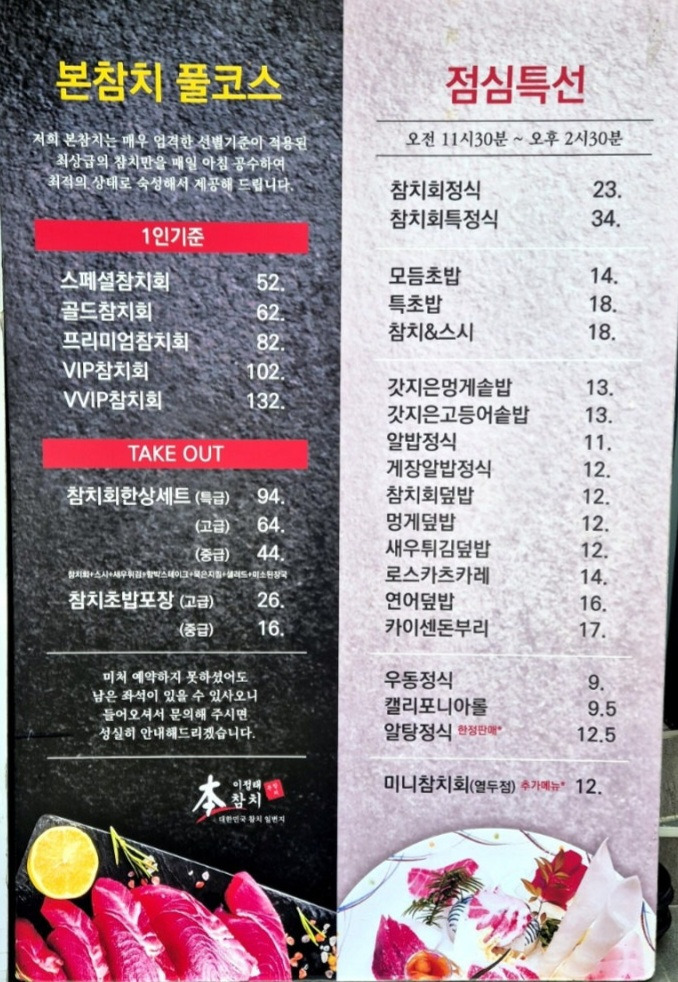 사모님 휴가중 점심 먹으러 중앙동 본참치로 이젠 부산을 넘어 전국적으로도 참치맛집인 이정태 본참치 점심특선 오픈런 했는데 금방 자리가 다 차고 회전율이 빨라 금방 또 자리가 생김 점심특선도 가성비 좋음