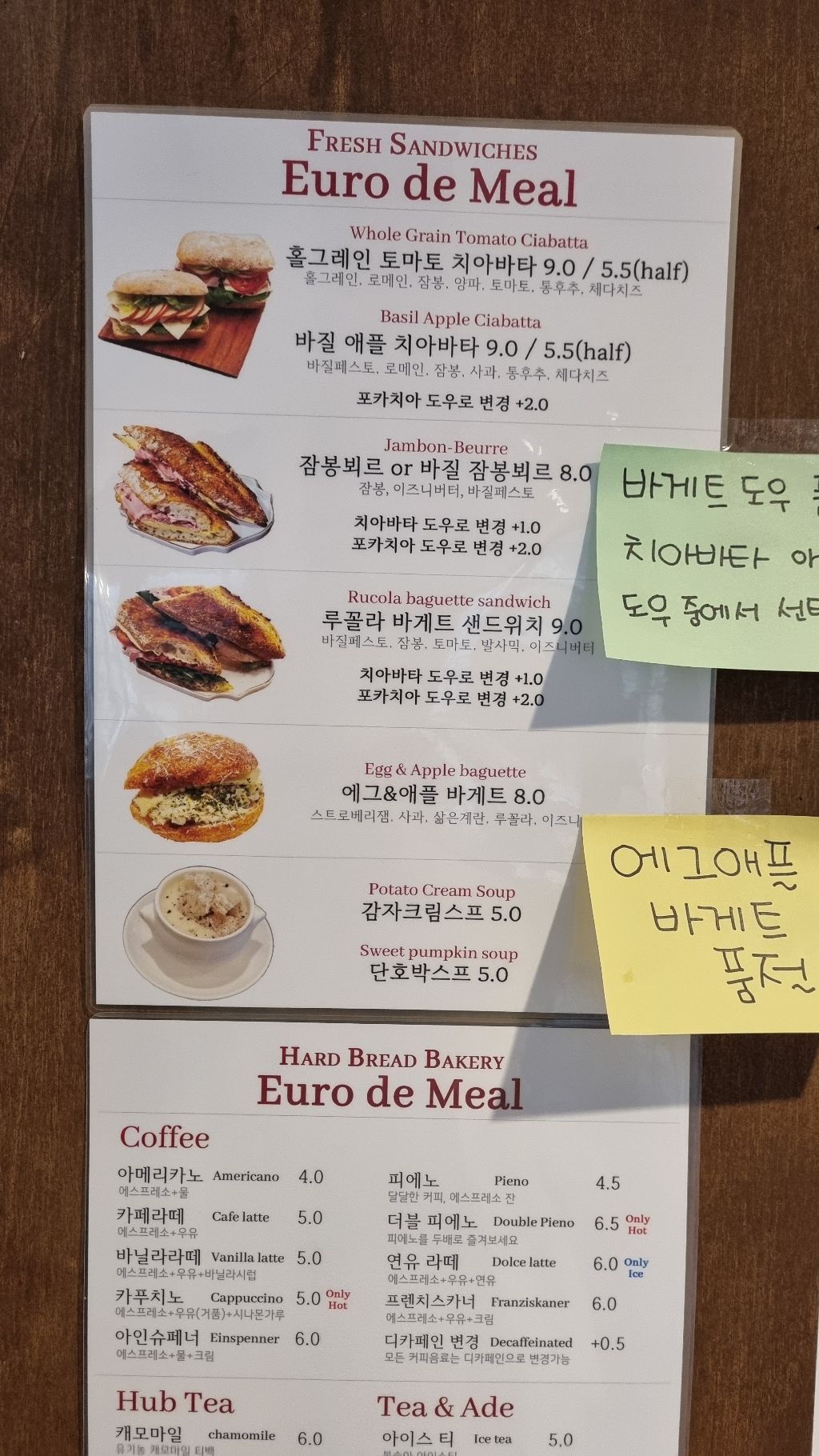 홀그래인 토마트 치아바타랑 잠봉뵈르 주문 했어요