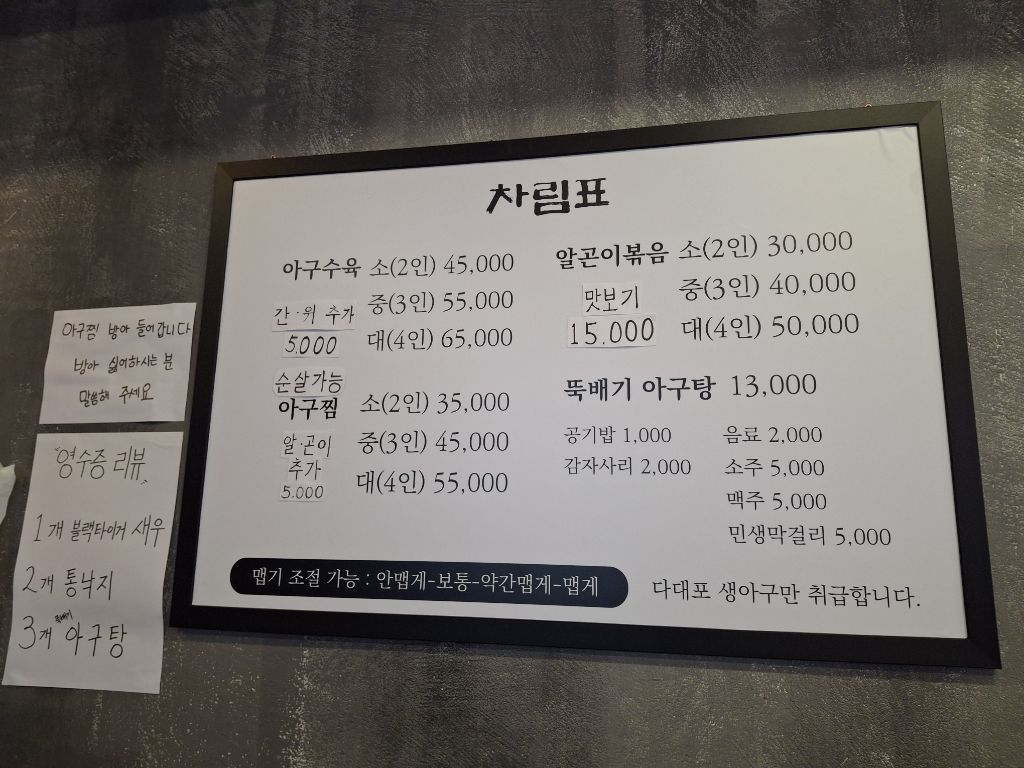 아구 위랑 간은 위에 토핑으로^^