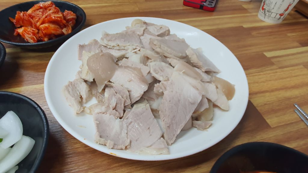 로 시키는군요 처음와서 모르고 시켰는데 칼국수 양도 많아서 수육은 몇점 맛만보고 포장해 갑니다~
