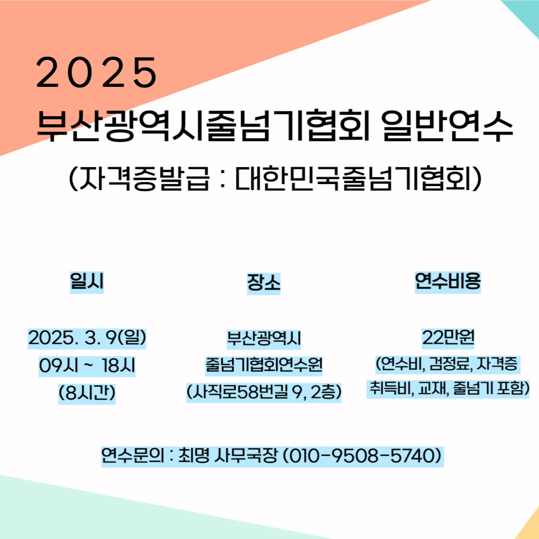 *입금은행 : 농협 301-0313-9209-81(예금주:부산광역시줄넘기협회)