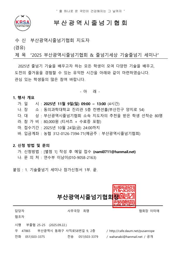 [2025 부산광역시줄넘기협회 & 줄넘기세상 기술 줄넘기 세미나]