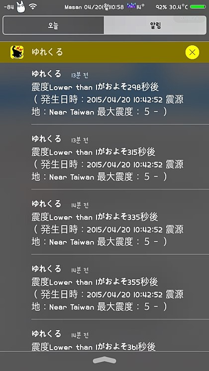 사진은 오늘 대만지진때 알람온거 캡쳐한거예요 ㅎ