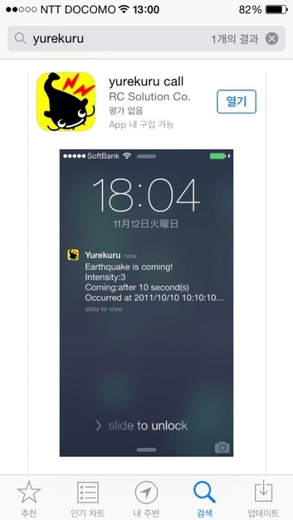 그래서 지진 예상어플 소개 해 드릴려구요;;;근데 일본이 워낙 지진이 많다보니 수시로 알람이 울려요;;;이부분은 조절 하셔야 하구요...