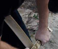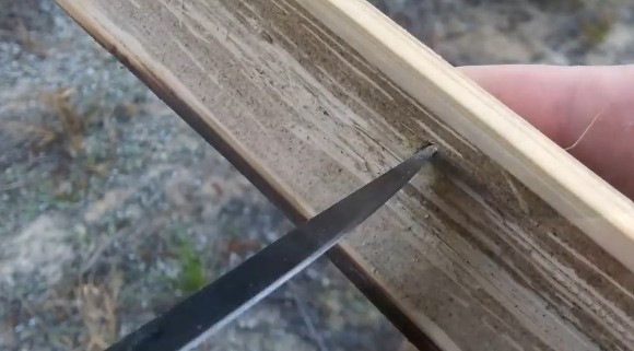 반대편에는 길을 만든다. 나이프가 없다면 날카로운 돌을 이용하자.