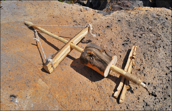 펌프 드릴은 불을 피우는 용도로만 사용하는 것이 아니라 구멍을 뚫을 때 사용하는 전통 방식이다.