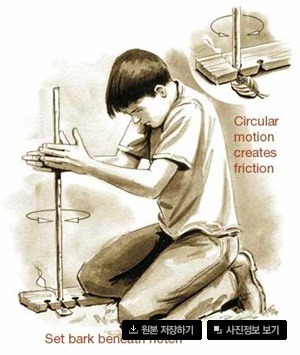 나무로 불을 필울 때 가장 중요한 것은 불씨를 만드는 바닥판과 불씨판의 재료.