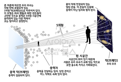 리사 랜들은 3차원 세계는 5차원 막(브레인)에 매달린 물방울과 같다는 이야기를 합니다.