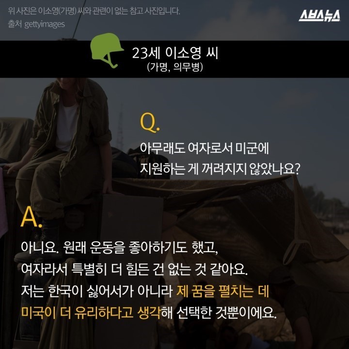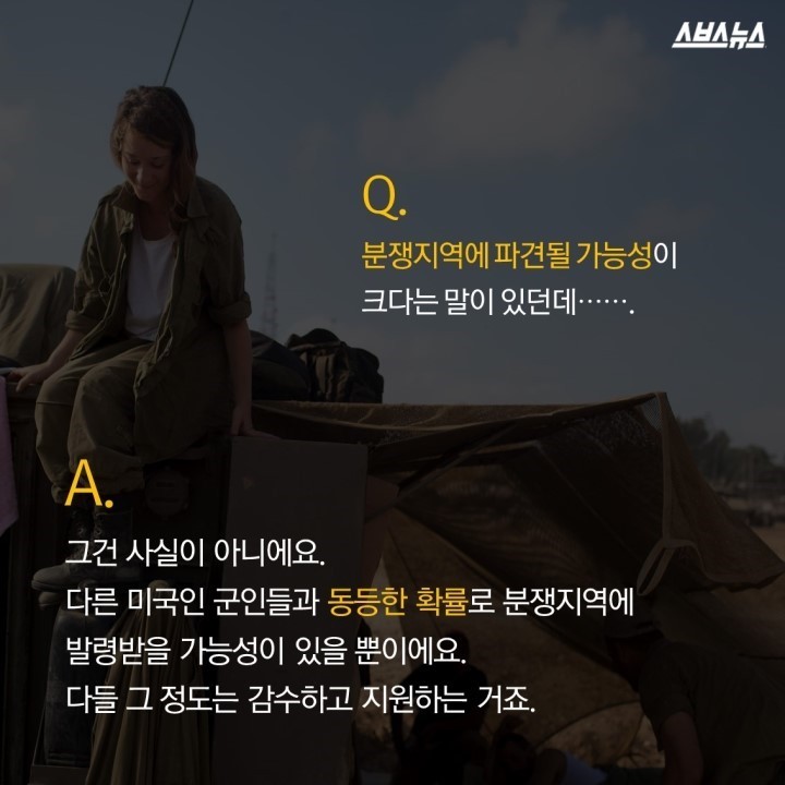 Q. 아무래도 여자로서 미군에 지원하는 게 꺼려지지 않았나요?