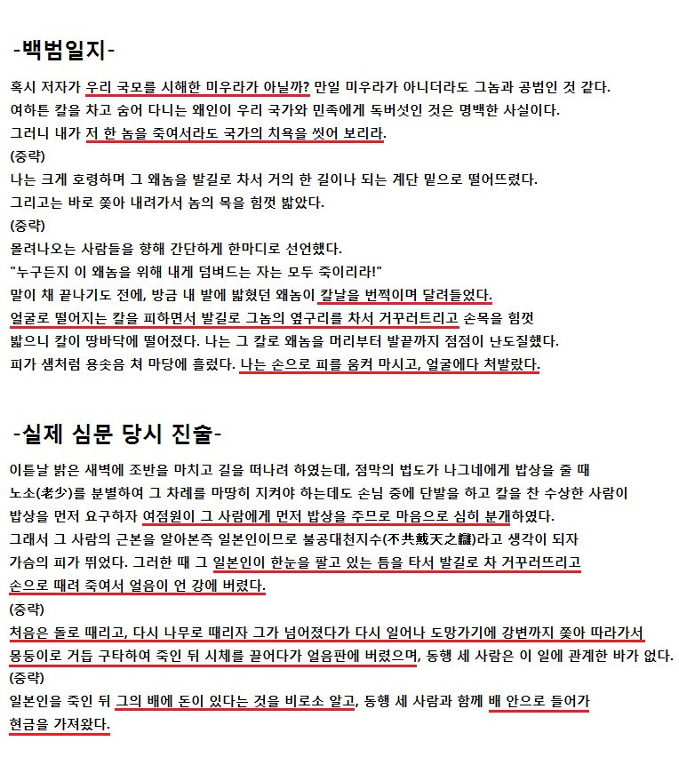 • 작성자신고인돌 | 작성시간 16.05.26 김구의 백범일기에도 잘 나와 있습니다...장사꾼 일본남자는 재수없이 죽은 겁니다....