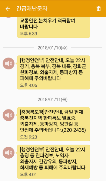 한파 재난문자 작성자흑도야지(충북)|작성시간18.01.11|조회수467 목록 댓글 3 글자크기 작게가 글자크기 크게가 날도 춥고, 길은 얼고, 감기, 독감도 유행하고이럴땐 "집밖은 위험" 가능하면 집에 있는게 상책인것 같습니다. 다음검색 현재 게시글 추가 기능 열기 북마크 공유하기 신고 센터로 신고 댓글 댓글 3 댓글쓰기 답글쓰기 댓글 리스트 작성자코난.카페장(경기) | 작성시간 18.01.11 아침에 영하 14도 지금은 -10도입니다 ㅎㄷㄷ 작성자즈나(부산) | 작성시간 18.01.11 부산 지금시간 영하 5도네요 작성자탄소중독화성인(창원) | 작성시간 18.01.12 어제 오늘 넘나 춥네요 ㄷㄷㄷ 댓글 전체보기