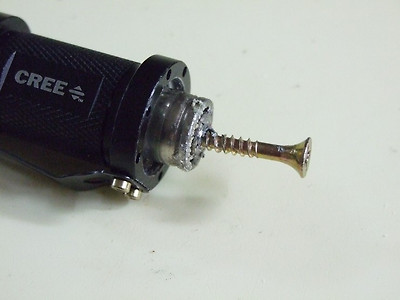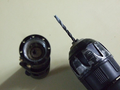 전동 드릴로 건전지에 구멍을 뚫었습니다.