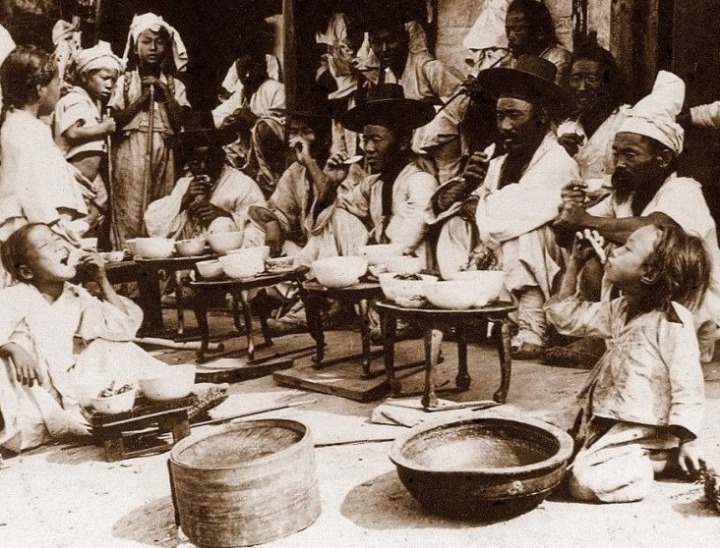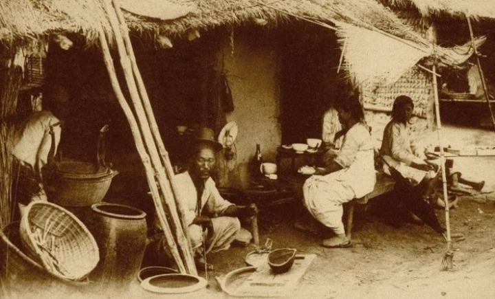 ◆ 1902년 주막의 멍석위에서 식사를 하는 손님들