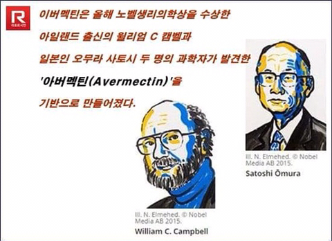 그리고 이 약품은 2015년 노벨 생리의학상을 수상한 윌리엄 캠벨과 오무라 사토시가 발견하고 개발한 약품이다. 노벨상을 수상할 정도라니, 이버멕틴은 얼마나 대단한 약일까?