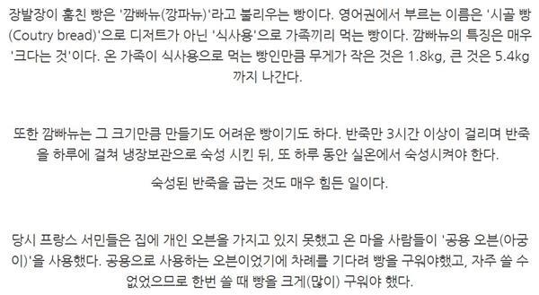 작성자전진(대구) 작성시간 21.01.20 그 당시 빵이 클 수 밖에 없는게 저걸 며칠씩 온 가족이 나눠 먹어야 했을만큼 나라꼴이 말이 아니었다고 합니다.조 때나 요 때나 없는자들은 훔칠 수 밖에 없지요. lmf때 막 훔쳐가시는 분들 많았었는데 요즘은 카메라 덕분인지 훔쳐가지 않고 그냥 달라고 하는 사람이 더 많습니다. 한번 주면 다음날부터 그냥 맡겨 놓은 것처럼 당연허게 손 내미는.. 아 장발장 이야기를 하다 이게 뭔지. 캄파뉴 이거 왜 비싸게 받는지 모르겠네요. 주위에 빵하시는 분들 분명 공정이 깜파뉴 공정이 아닌데 모양만 내고 캄파뉴라 팔고..가격은 더럽게 비싸게 받고.