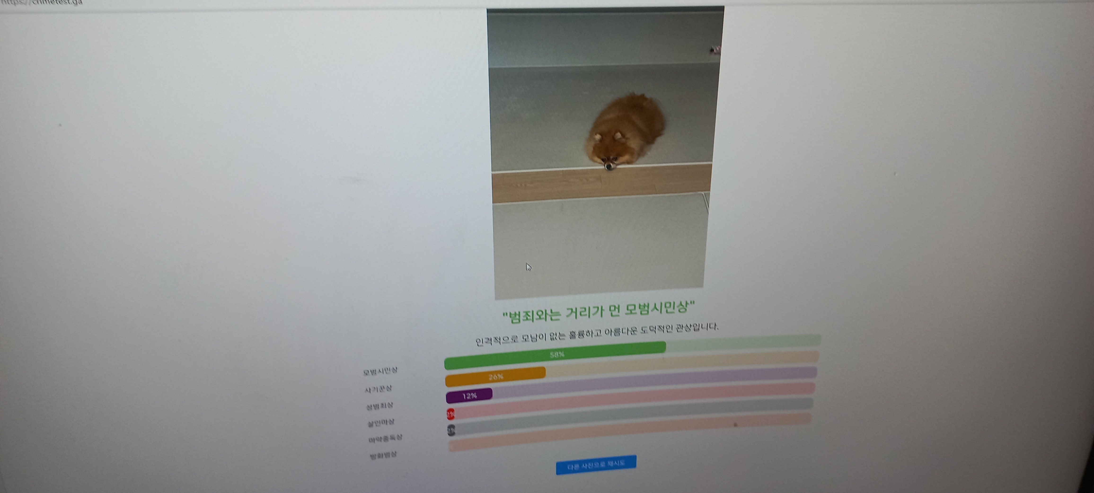 범죄자 관상 테스트 작성자바르다김선생종신노예백번김구운선생|작성시간21.11.02|조회수930 목록 댓글 1 글자크기 작게가 글자크기 크게가 그러치!! 욕심많은 돼지가 먹을거 없어 아쉬워서똬리 틀고 배배꼬는걸 아는구만 틀렸어.... 백날 먹을것만 찾아서 집구석을 돌아다니며 킁킁댄다고 그래.... 범죄와는 거리가 멀다. 다음검색 현재 게시글 추가 기능 열기 북마크 공유하기 신고 센터로 신고 댓글 댓글 1 댓글쓰기 답글쓰기 댓글 리스트 작성자익스플로러 | 작성시간 21.11.02 ㅋㅋㅋ이런게 있는 줄은 몰랐네요 댓글 전체보기