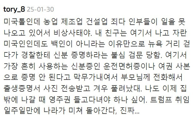 영주권자도 다 잡아들인다는데 도대체 왜 그런건지...