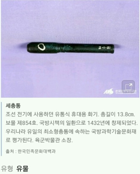 이미 세종 14년에 고려 우왕때 최무선이 제작한 휴대형화포를(승자총통) 개량한