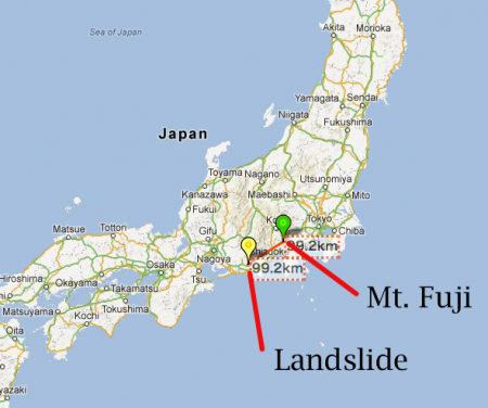 4월 23일 후지산과 약 100km 떨어진 시즈오카현의 차밭에서 산사태가 발생합니다..